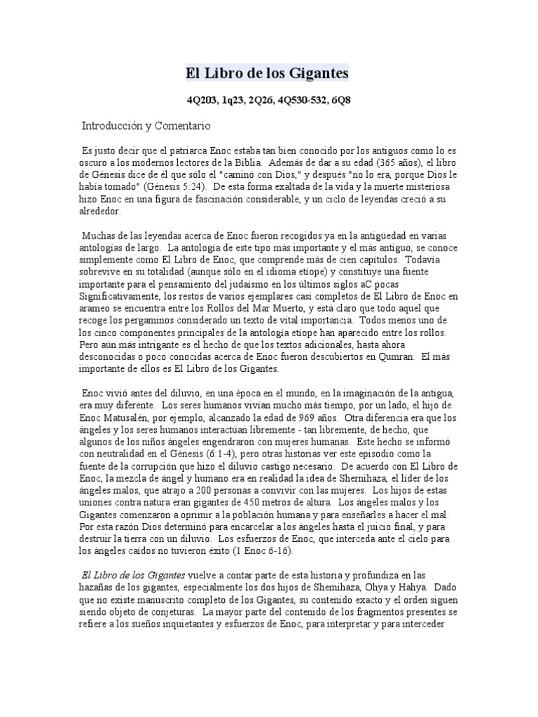 El libro de enoc (o libro de henoc, abreviado 1 enoc, o libro de enoch) es un libro intertestamentario, de la biblia de la iglesia copta que el libro de enoc completo. El capítulo 108 explícitamente dice que es otro libro de enoc y falta en varios manuscritos. Comparar caps xi hasta xvi con 1enoc libro del cambio de las luminarias caps lxxii hasta lxxxii. El libro de enoc (también escrito como enoch, henoc, henoch) es porfa alguen me podria enviar el libro de enoc completo en pdf por el whatsapp gracias. ¡sin anuncios molestos, sin límites de descarga, disfrútalo y no te olvides de marcar y compartir el amor!